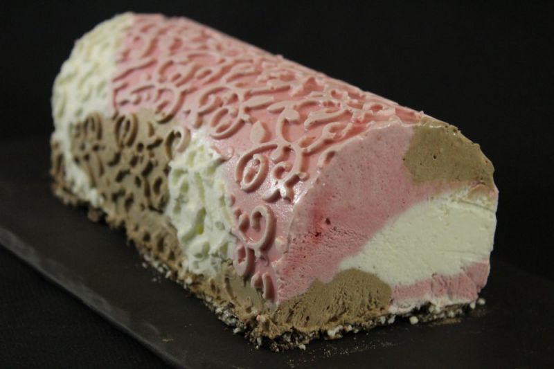 Svaki semifredo stavite u posebnu slastičarsku vrećicu i naizmjenično punite kalup (mi smo koristili kalup Buche Arabesque od